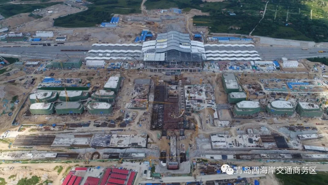 青島西站換乘中心及配套工程完成13個單體建筑主體結構封頂