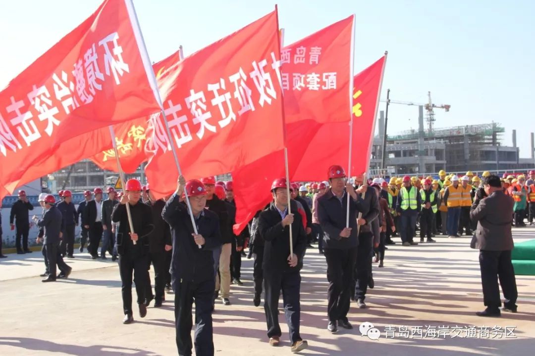 為深入貫徹落實新區(qū)工委、管委“突擊50天,決勝西客站”的部署,全面做好青島西站建成倒計50天的突擊工作,實現(xiàn)青島西站2018年12月20日開通運營的目標,10月29日,交通商務(wù)區(qū)在青島西站施工現(xiàn)場舉行了“突擊50天,決勝西客站”誓師大會。西海岸新區(qū)管委主任、區(qū)長李奉利,區(qū)委常委、副區(qū)長解宏勁,副區(qū)長、黨組成員顧清彌、區(qū)政府黨組成員劉記軍、區(qū)政府黨組成員劉元玉以及各相關(guān)部門、街道和全體參建單位參加了誓師大會。
